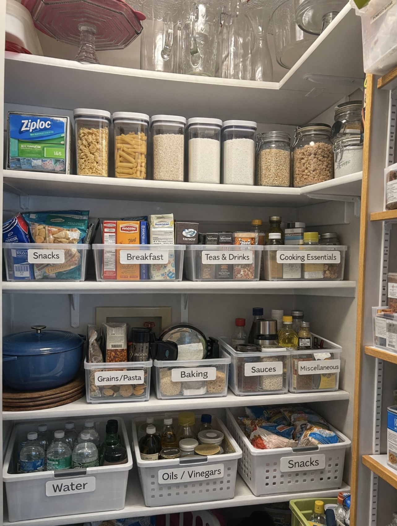 The more I simplify things, the more room there seems to be for what actually matters. Recently, this has manifested itself in spring cleaning and purging of items that only take up space. Something about warmer weather and small bits of sunshine makes me want to start fresh by creating a less cluttered space to live and work in. It can feel daunting, but if you focus on one area, like a closet, pantry, or bathroom cabinet, it can feel a lot more manageable. Take a look at your belongings and think: "Have I worn this in the last year? Have I used this in the last six months? Is this still good or is it expired?" If you answer no to any of these questions, it may be time to part ways. You might even make some extra cash, or make someone's day when dropping off a bag of donations! Here's a picture of a recent organization project of mine: my pantry!
